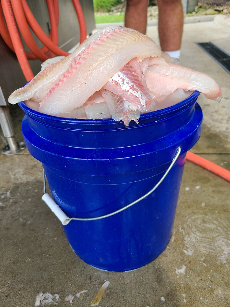 The reward after a fun day of fishing is the highly coveted meat bucket. The average size of walleyes in Lake Erie is about 3 pounds right now and growing. Those fish make for a nice size fillet. It only take about 24 to 30 walleyes to fill a 5 gallon bucket full of meat. Come join us and get your very own meat bucket!
